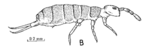 So what are these primitive pre-insects? Collembola are widespread Protura are less than 2mm long and uncommon, sometimes they are found when sampling moist soil. Diplura range up to 50mm but are mainly found under logs and stones and in moist soil.